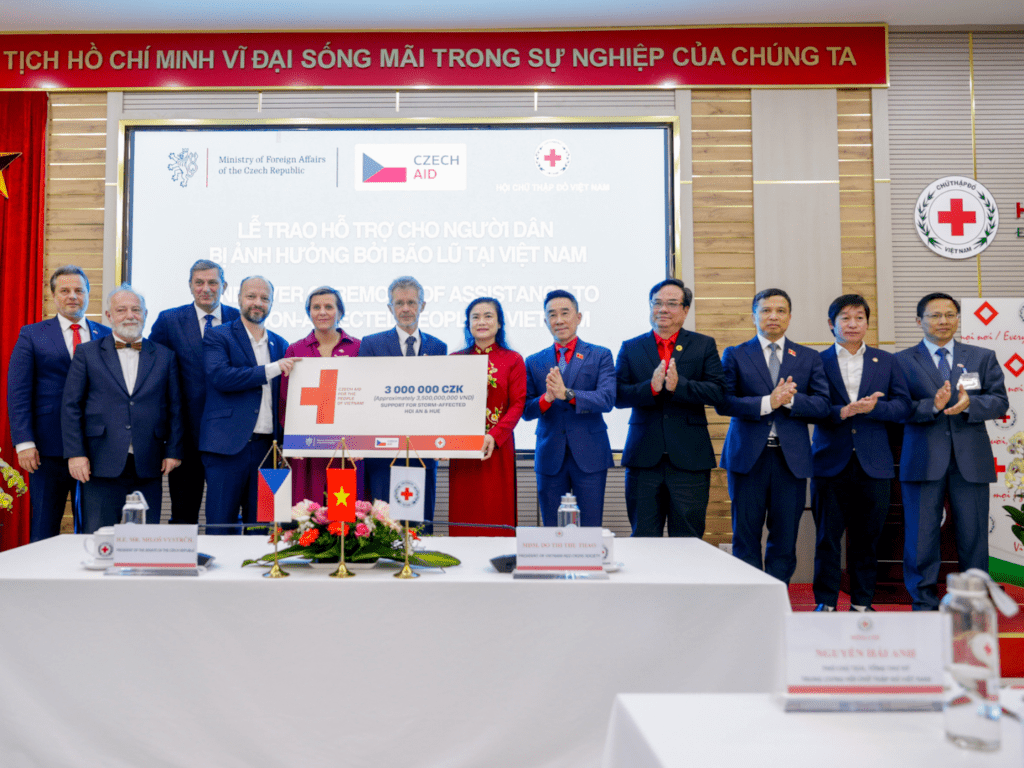 Đoàn đại biểu cũng đến thăm trụ sở Hội Chữ thập đỏ Việt Nam, nơi Chủ tịch Thượng viện trao tặng tấm séc trị giá 3.789.660.000 VND từ Bộ Ngoại giao Séc. Khoản hỗ trợ này được dùng cho công tác khắc phục hậu quả sau bão Fengshen và bão Matmo tại miền Trung, đặc biệt dành cho việc tái thiết cơ sở giáo dục ở các khu vực chịu ảnh hưởng nặng nề.